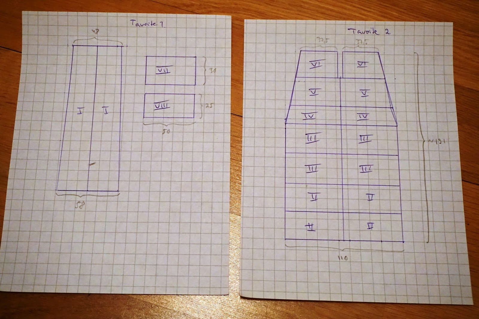 Patjojen materiaali oli samaa kuin aiemmin, eli Etolasta saatavaa dryfeel-vaahtomuovia ja kangas Eurokankaasta. Ryhmittelemällä patjojen palat fiksusti, saattoi leikkauksen optimoida ja siten välttää hukkapalat melko hyvin.